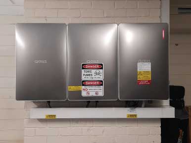 A battery bank can be installed with your solar power system at the time of installation or can be retrofitted later. The solar power generated from the system powers your home and any excess power fills the battery bank. This power can then be used when your solar system is not generating enough energy to power your home. Furthermore, our super-effeicient power storage batteries could enable you to feed unused power back into the grid - earning you money from the power generated from your solar system! We only supply the very best batteries on the market and will recommend the most suitable storage system for your needs and budget.